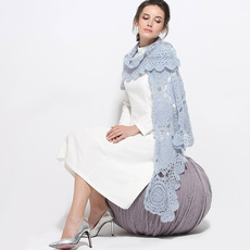 奢华高级双层蕾丝~秋冬羊绒保暖百搭拼色针织护颈围脖披肩两用