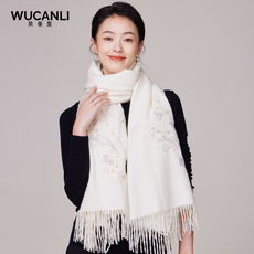 羊毛围巾女秋冬刺绣保暖围脖送长辈礼物中年妈妈礼盒装两用披肩