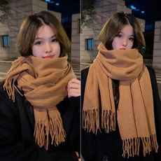 秋冬季cashmere山羊绒围巾女流苏针织保暖披肩高级感护颈围脖两用