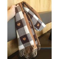 新款韩版爱心刺绣格少女感围巾女秋冬季学生保暖百搭围脖披肩两用