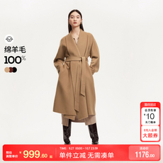 TO*T设计款不对称领中长款毛呢外套羊毛双面呢大衣女秋冬女装