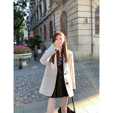 辰米范 高级感黑色毛呢西装外套女加厚夹棉秋冬休闲宽松呢子大衣