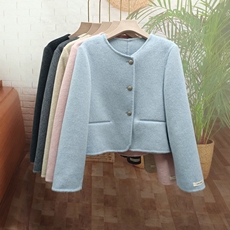 小香风秋冬新款双面羊毛呢外套女修身时尚简约款圆领休闲短款大衣