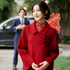 过年红色双面羊绒大衣女短款秋冬新款系带修身显瘦立领羊毛呢外套