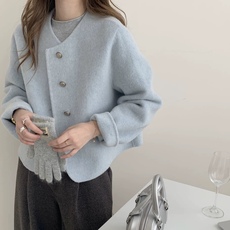 毛呢大衣女2025年秋冬季廓形圆领短外套