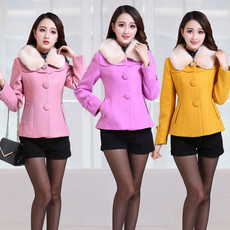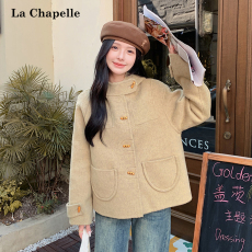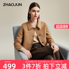 兆君秋冬新款高端纯色明线羊毛外套女翻领单排扣短款毛呢大衣
