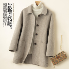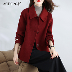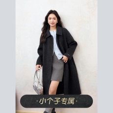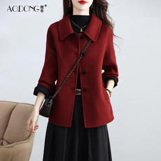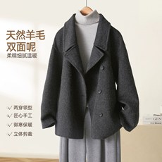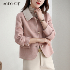 2025秋冬新款中长款双面毛毛呢外套女名媛立领小个子短款呢子大衣