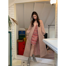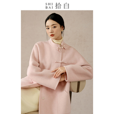 粉红玛琍毛呢外套女秋冬时尚气质中式立领长款大衣PMALW6107