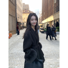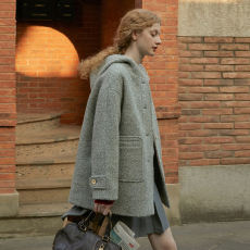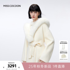 MISSCOCOON可可尼毛呢大衣女2025秋冬新款慵懒风狐狸毛连帽外套