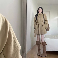 风衣外套女毛呢秋冬新款小个子加厚韩版修身气质中长款呢子大衣