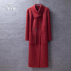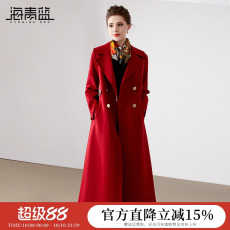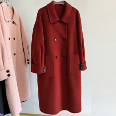 安可拉红双面呢羊绒大衣女中长款秋冬新款法式气质围巾款毛呢外套