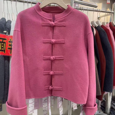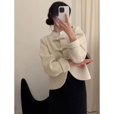 新中式国风盘扣呢子大衣女秋冬季今年流行漂亮小个子白色毛呢外套