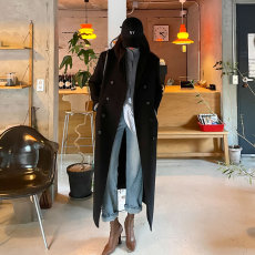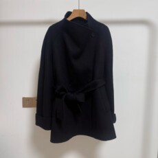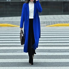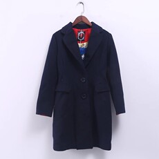 孤品系列 秋冬款女装品牌库存折扣藏青色收腰百搭毛呢大衣D109-9