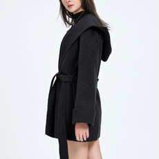 胖mm加大码连帽女士羊绒外套百搭短款开衫女秋冬双面绒羊毛大衣
