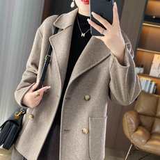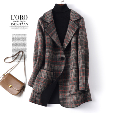 秋冬新款双面羊绒大衣女小个子英伦格子西装薄羊毛呢休闲外套