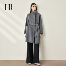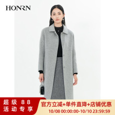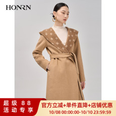 HONRN/红人连帽大翻领系带收腰羊毛呢子大衣外套女秋冬HG55OD466