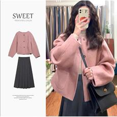 粉色短款呢子大衣女2025秋冬新款韩系小个子气质小香风毛呢外套
