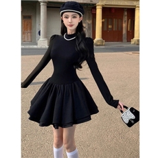 2025新年修身显瘦秋冬领打底喇叭袖针织裙春秋季单穿连衣裙短裙