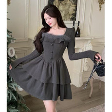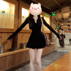 批发秋冬韩系保暖舒肤绒纯欲连衣裙子女御姐长袖女装包臀紧身短裙