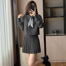 秋冬款女装圆领针织衫套头毛衣472906 针织迷你短裙半身裙472907