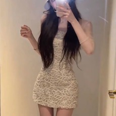 大码女装胖mm纯欲辣妹蕾丝吊带连衣裙秋冬法式收腰显瘦打底短裙子