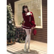 丝绒挂脖连衣裙女秋冬高级感气质生日裙子千金风收腰公主蛋糕短裙