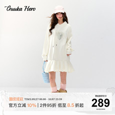 GUUKAHERO韩系小羊印花连帽落肩卫衣裙女 25年秋冬新款短裙连衣裙