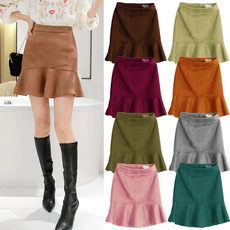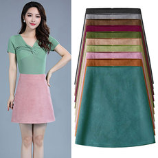 女高腰a字短裙修身包臀裙遮跨显瘦伞裙2025秋冬新款麂皮绒半身裙