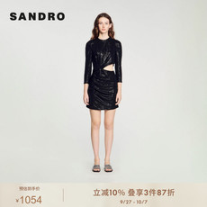 SANDRO Outlets秋冬女装法式优雅金色扣饰白色粗花呢连衣裙短裙