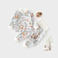 全棉纯棉宝宝秋衣婴儿纯棉印花复古上衣卡通儿童春秋内衣打底童装