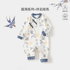 宝宝春秋衣服长袖偏开连体衣中国风a类纯棉初生婴儿居家打底爬服