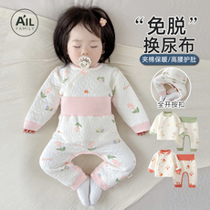新生婴儿衣服秋冬加厚加绒男女宝宝保暖分体两用裆秋衣秋裤套装