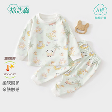 春秋婴乐岛宝宝彩棉开衫上衣纯棉内衣男女婴儿童加厚打底秋衣睡衣