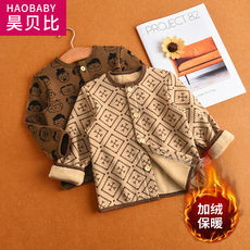 儿童加绒开衫宝宝秋冬单件上衣小外套婴儿保暖内衣对襟秋衣一体绒