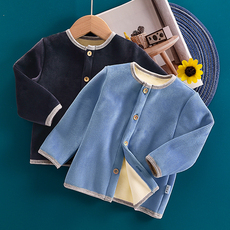 宝宝保暖上衣婴儿灯芯绒开衫加绒儿童秋衣单件加厚秋冬款1-3岁