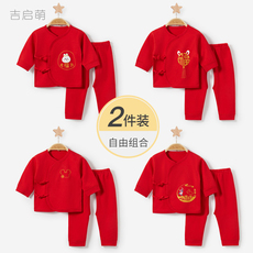 新生婴儿衣服春秋季初生纯棉红色0打底3月内衣秋衣上衣宝宝半背衣