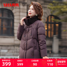 鸭鸭羽绒服女2025秋冬新款中老年加厚短款狐狸领妈妈装保暖外套S