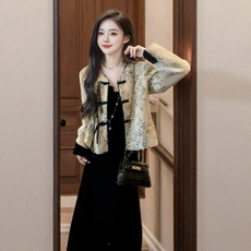 小香风时尚套装女秋冬新款高端气质千金洋气木耳边外套短裙两件套