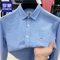 【含羊毛】罗蒙商务长袖衬衫男2025秋季新款弹力无痕纯色休闲衬衣