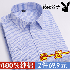 F3714恺春秋男式长袖衬衫 棉百搭商务休闲上衣免烫 蓝色