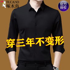 啄木鸟无痕长袖衬衫春秋季男士商务休闲桑蚕丝上衣免烫弹力衬衣男