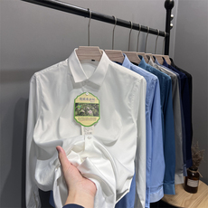 免烫抗皱!商务休闲纯色长袖衬衫男2025秋季新款顺滑亲肤透气上衣
