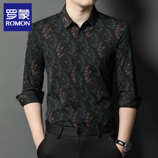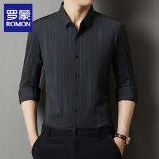 罗蒙冰丝无痕翻领衬衫男长袖2025款春秋季新品衬衣商务休闲爸爸装