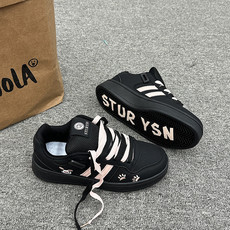 港风小众黑粉色双鞋带面包鞋女ins2025新款学生休闲运动滑板鞋子