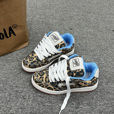 豹纹印花校园风面包鞋女ins2025秋季帆布复古低帮国潮休闲滑板鞋