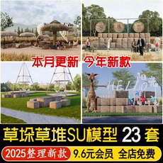 草图大师乡村景观小品稻田草垛稻草堆草墩露营稻草艺术装置SU模型
