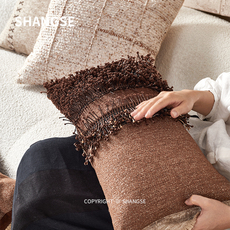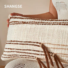 尚塞原创设计自然侘寂风中古风民宿原始稻草灰橙色样板房沙发抱枕