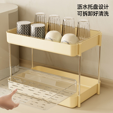 杯子收纳置物架放水杯茶杯桌面储物架奶油风多层沥水托盘收藏家用