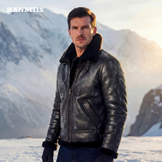 汉名仕徽章二战飞行服空军B3皮毛一体男装外套真皮夹克绵羊皮衣