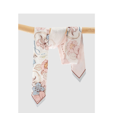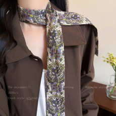 「宝相·小红花」100%真丝长条薄款围巾系脖细窄丝巾女飘带高级感